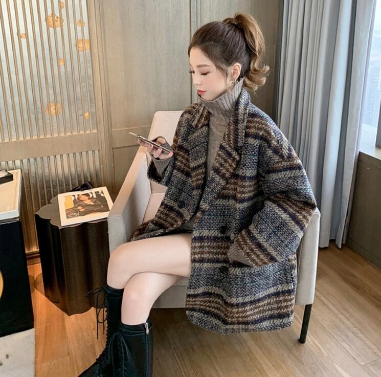 2022秋冬新作 レディースアウターコート ピーコート チェック Pコート