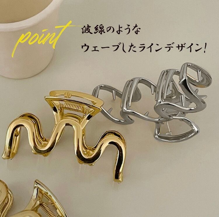 波線のようなウェーブしたラインデザインがおしゃれなヘアクリップ2個セット