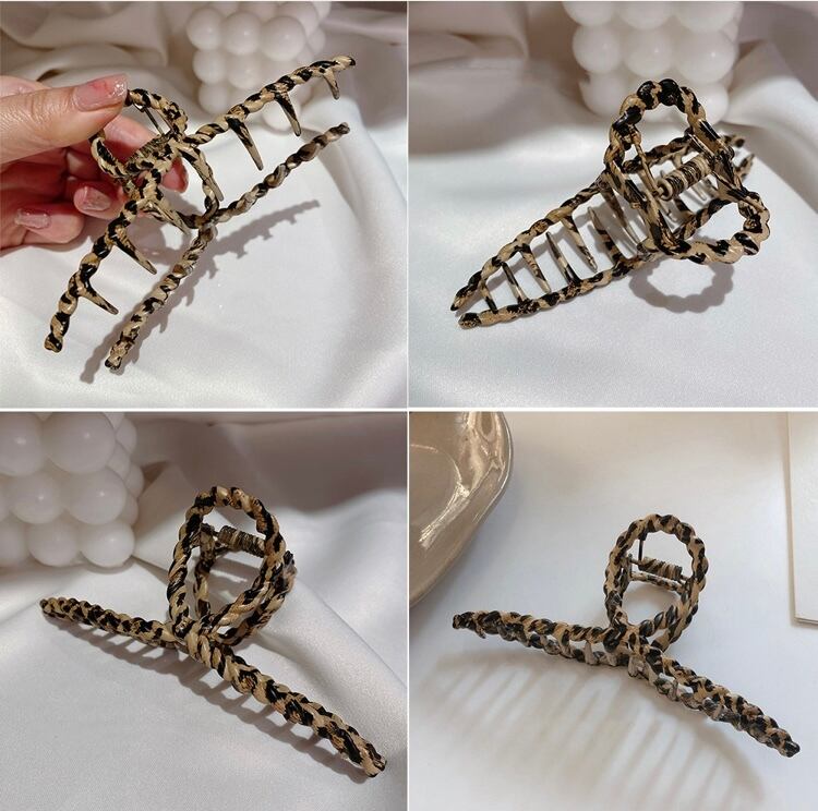 アースカラーのヒョウ柄が派手度控えめ&おしゃれ度高めのレディースバンスクリップ
