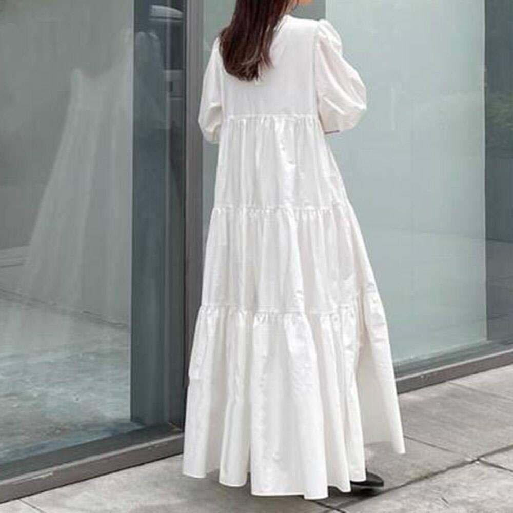 2021新作 ワンピース ロングワンピース パフスリーブ フレアワンピース