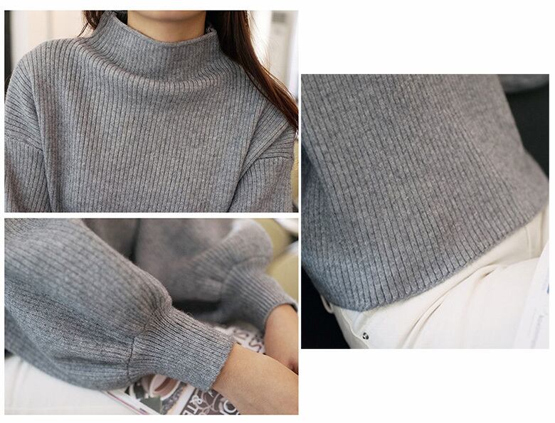レディース ニットセーター トップス パフスリーブ バルーン袖 ハイネック