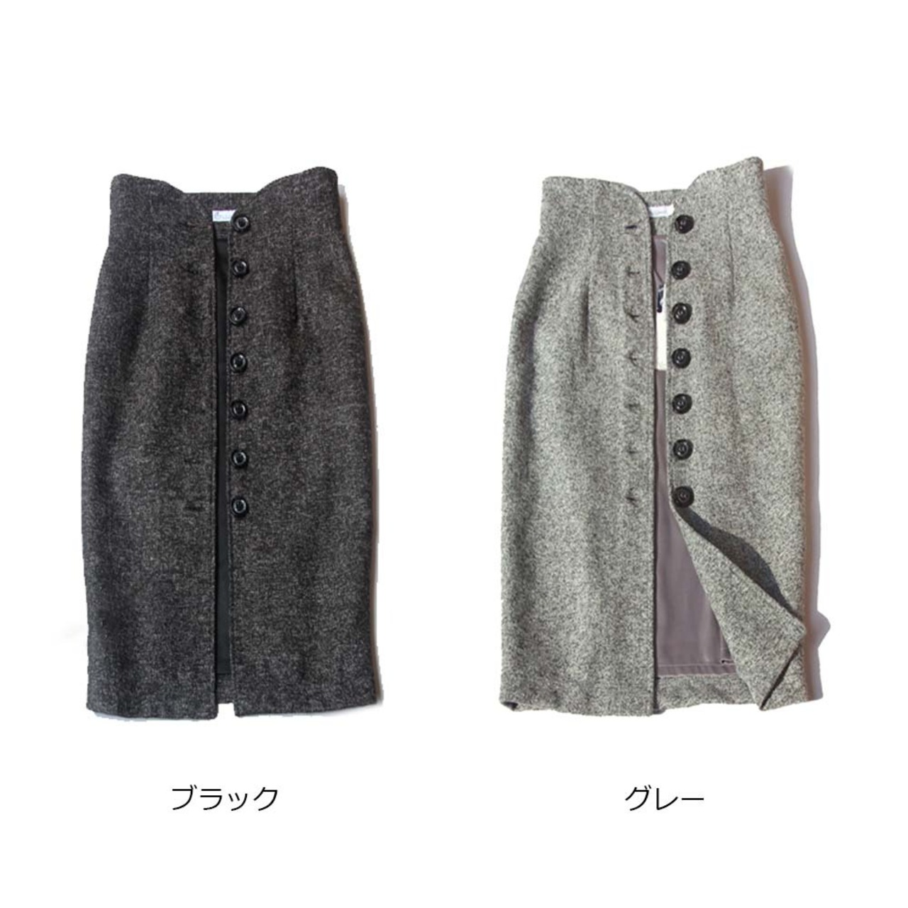 秋冬にぴったりなツイード素材で仕上げたタイトシルエットのスカートトレンドのミモレ丈は肌見せが苦手な方でも取り入れやすい丈感フロントのシングルブレストボタンは全て開閉可能であり着脱簡単
