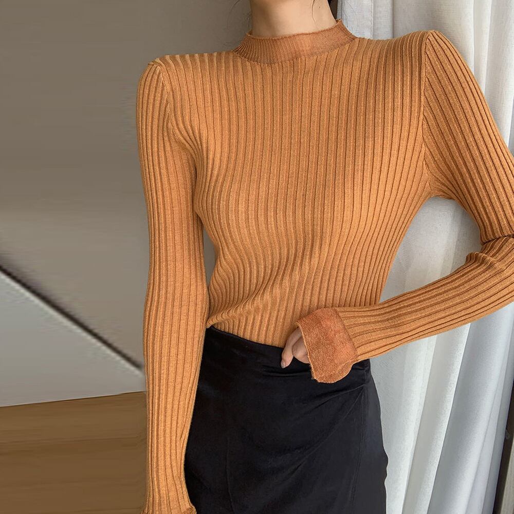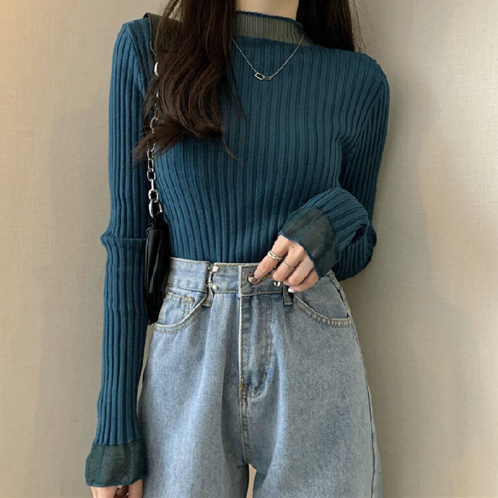 ドッキング リブニット プチハイネック レイヤード おしゃれ ニットソー きれいめ 韓国ファッション レース付きセーター